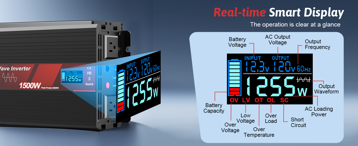 答: 逆变器是电源转换器。它是将蓄电池直流(DC)电转换为交流电(AC). 应用广泛,使用简单,常用于车载用,船舶,野营户外,光伏项目,家用办公等等。