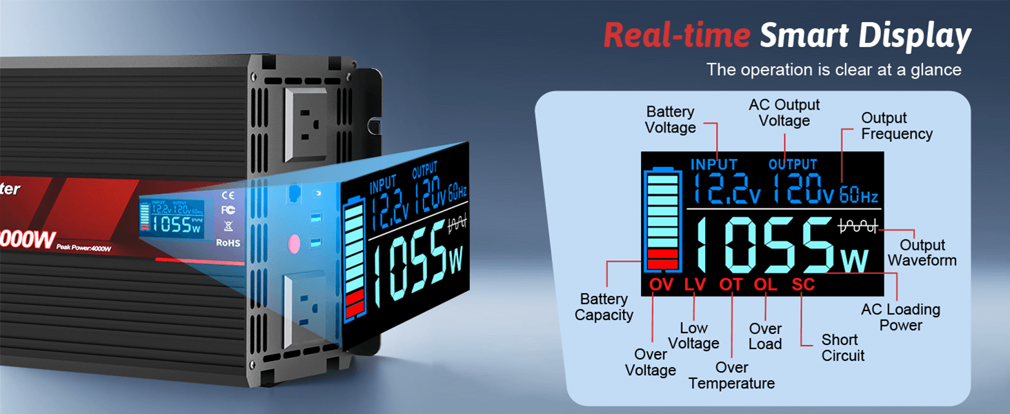 答: 逆变器是电源转换器。它是将蓄电池直流(DC)电转换为交流电(AC). 应用广泛,使用简单,常用于车载用,船舶,野营户外,光伏项目,家用办公等等。